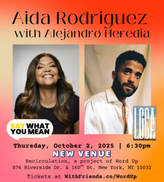 Alejandro Heredia (LOCA) with Aida Rodrriguez and live podcast Thursday, October 2, 2025 6:30 PM 7:30 PM Recirculation 876 Riverside Drive New York, NY, 10032 (map) Google Calendar ICS Learn more