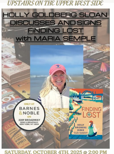 Holly Goldberg Sloan (FINDING LOST) launch with Maria Semple Saturday, October 4, 2025 2:00 PM 3:00 PM Barnes & Noble - Upper West Side 2289 Broadway New York, NY, 10024 (map) Google Calendar ICS Learn more