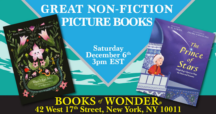 Kate Finney & illustrator Esmé Shapiro (DON’T EAT ME! THE ALMOST TRUE STORY OF BELLADONNA) and M.O. Yuksel (THE PRINCE OF STARS) Saturday, December 6, 2025 3:00 PM 4:00 PM Books of Wonder 42 West 17th Street New York, NY, 10011 (map) Google Calendar ICS Learn more