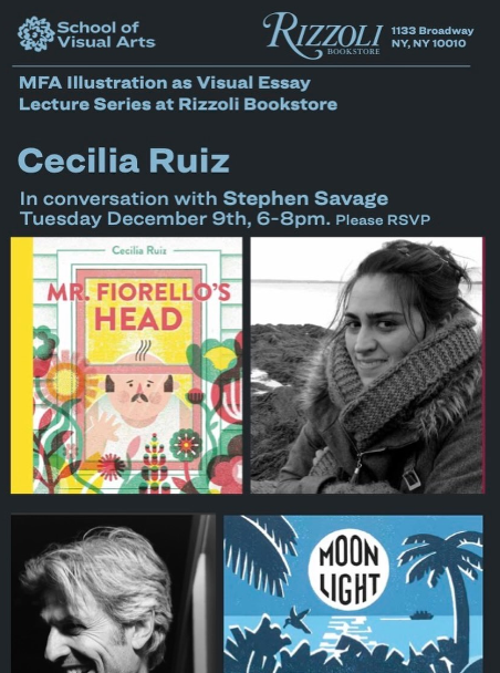 Dec 9 CHILDREN Cecilia Ruiz (MR. FIORELLO’S HEAD) w/Stephen Savage Tuesday, December 9, 2025 6:00 PM 8:00 PM Rizzoli Bookstore (map) Google Calendar ICS Learn more View Event →